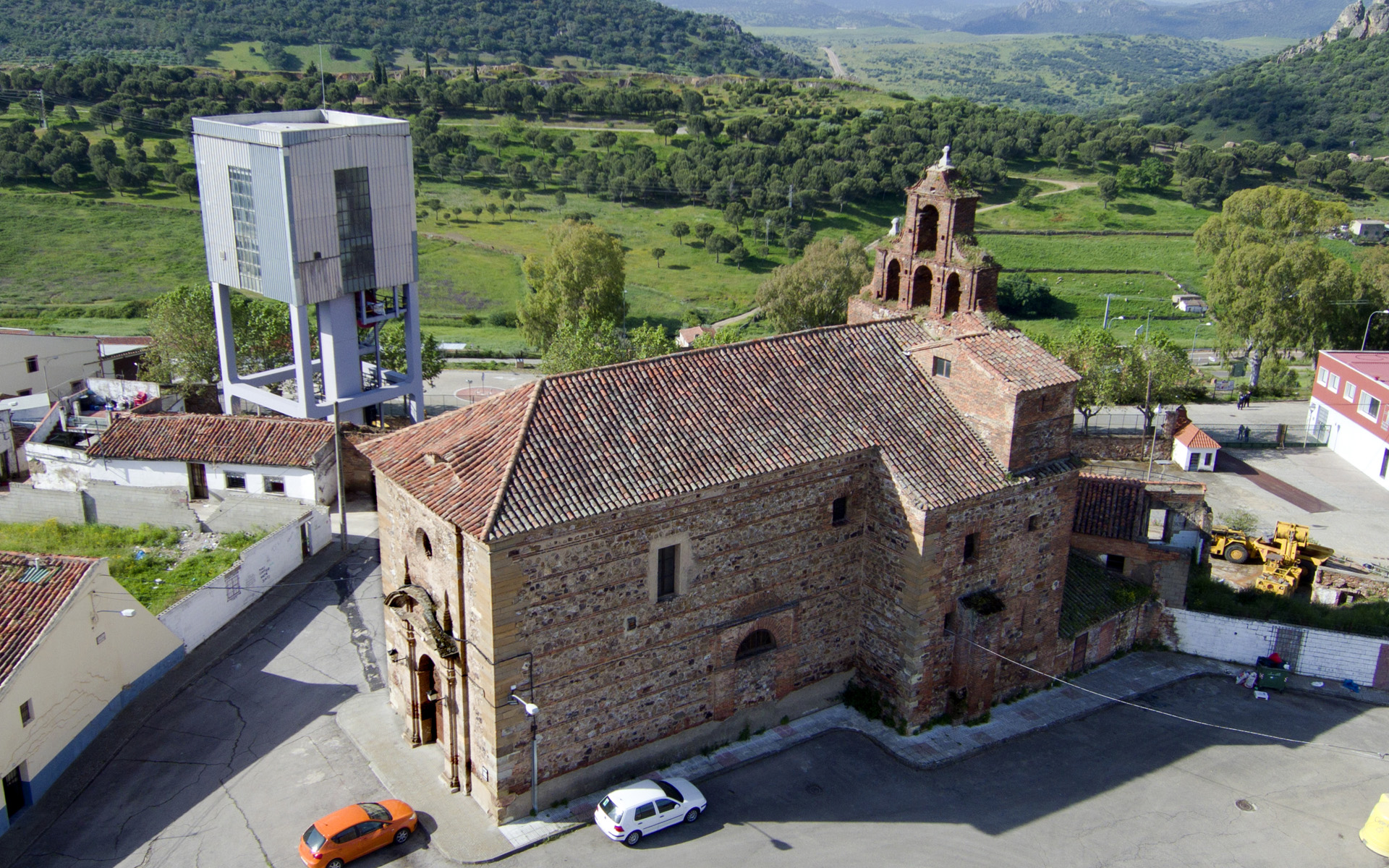 8. Te encuentras en uno de los puntos más altos de la ciudad, y origen del desarrollo urbano de Almadén. Por eso en ese punto se construyó la primera iglesia, la de San Sebastián. En el código QR puedes encontrar una explicación detallada. Puedes obtener una vista completa del Parque Minero.