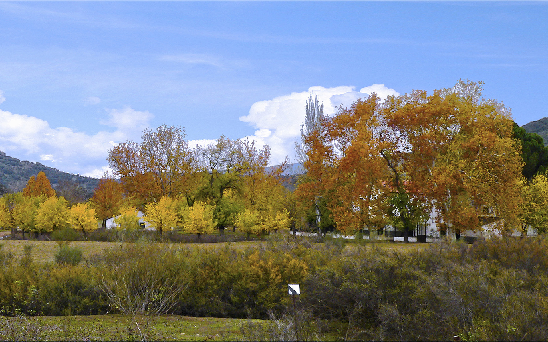 Vamos por la antigua carretera y en el cruce de caminos que nos encontramos debemos tomar el camino de la derecha, en dirección al puente sobre el arroyo. Nada más cruzar el arroyo continuamos por el camino de la derecha, en dirección hacia el Molino de los Ferreras.